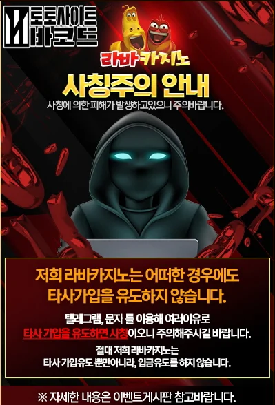 절대 저희 라바카지노는 타사 가입유도 뿐만 아니라, 입금유도를 하지 않습니다.